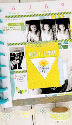 I layered in some of that beautiful dotted washi and some of those pretty butterflies, I love all the pretties! Sometimes I have to really work on not using all of them on one spread! I have to remind myself that there are 3 more weeks in the month! lol