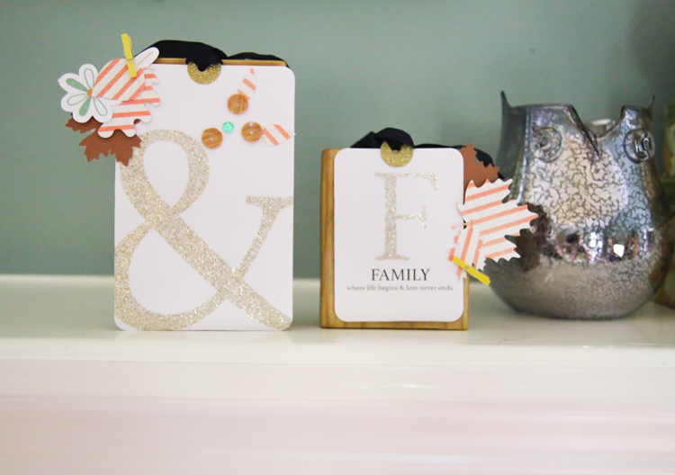The blocks I used were made from one of my crop friends I have cropped with since 2009.  I have enough to display a long banner style home decor, or to do just like this and display two.  I love them, because the ribbon just slips over the top that she attached to the blocks and can interchange them whenever I like.  They measure approximately 6×3.5 and 4×3.25.