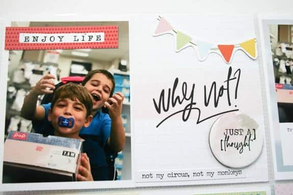 ‘The colors of this kit went so perfectly with this wide open picture while we were driving that I decided to tell the story of our week (even though this was in Feb with this kit). I still had the Feb DITL saved so I was so happy it matched this kit too!’