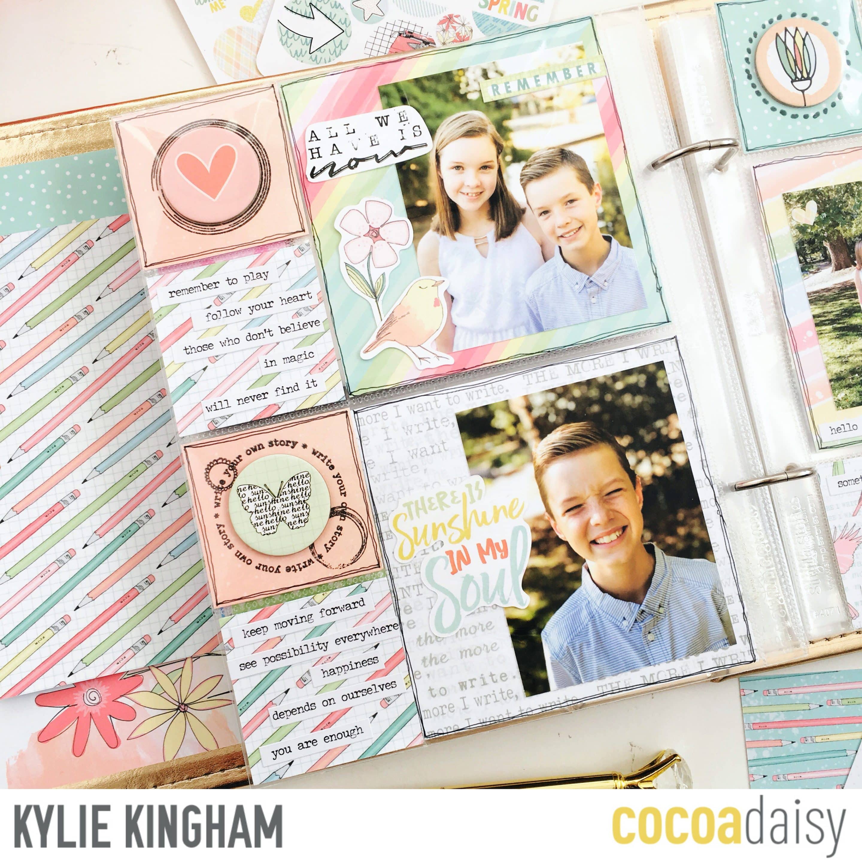 Hello Daisy fans! Kylie with you again today, sharing some of the Design Teams creativity for April, using the Pocket Memory Keeping kit. Let’s get straight to it and have a look at what eveyone has been creating.There is lots of inspiration for you! First up is Katherine who has created two wonderful layout incorporating the Pocket Memory Keeping kit. In her own words she shares –