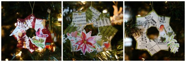 Good Morning Daisy fans!  Wendy and Simone here today to share some fun ornaments we created out of the December Planner kits.  Isn’t it amazing what you can create from these kits?  Not only planner fun, but layouts, Pocket Pages, cards, and even ornaments!