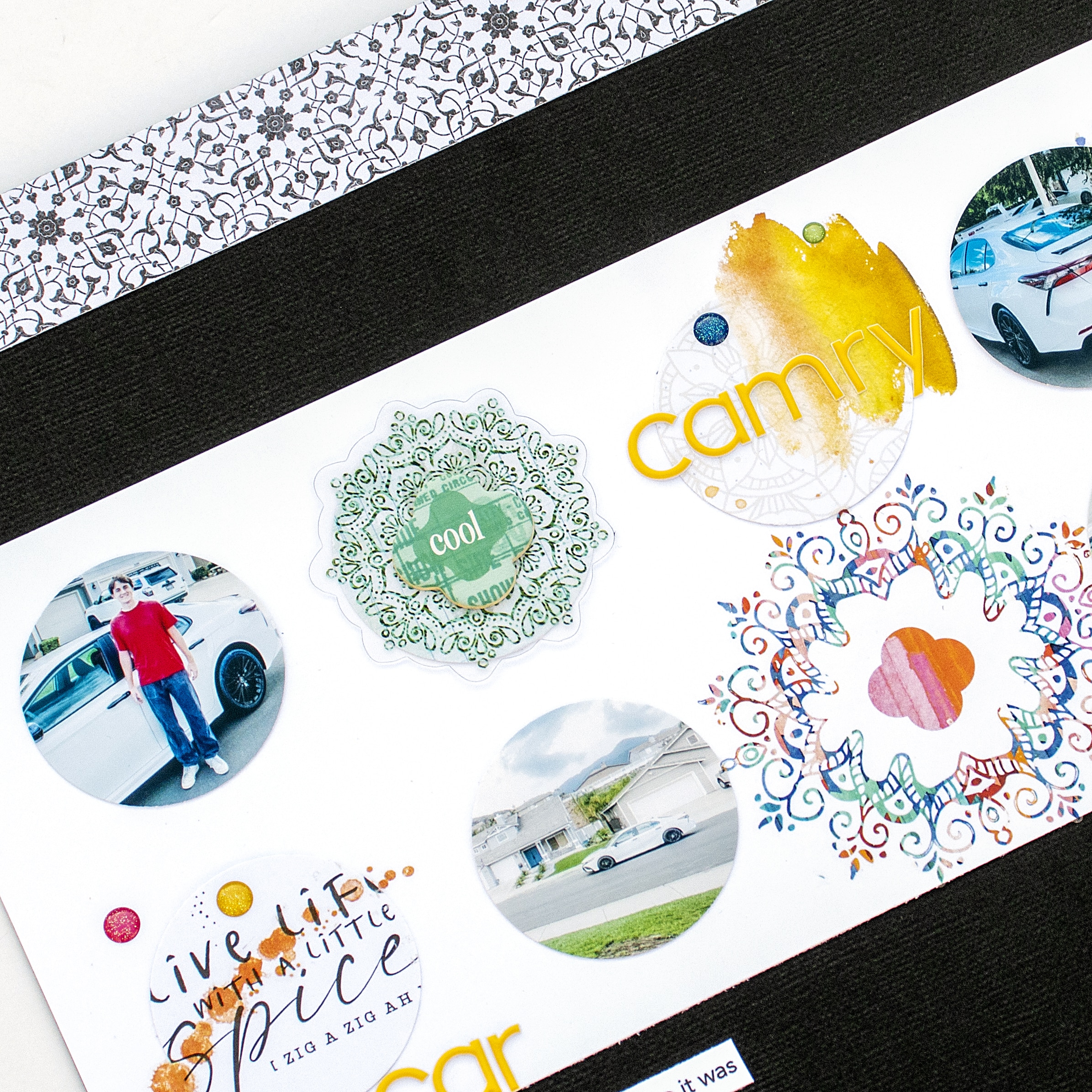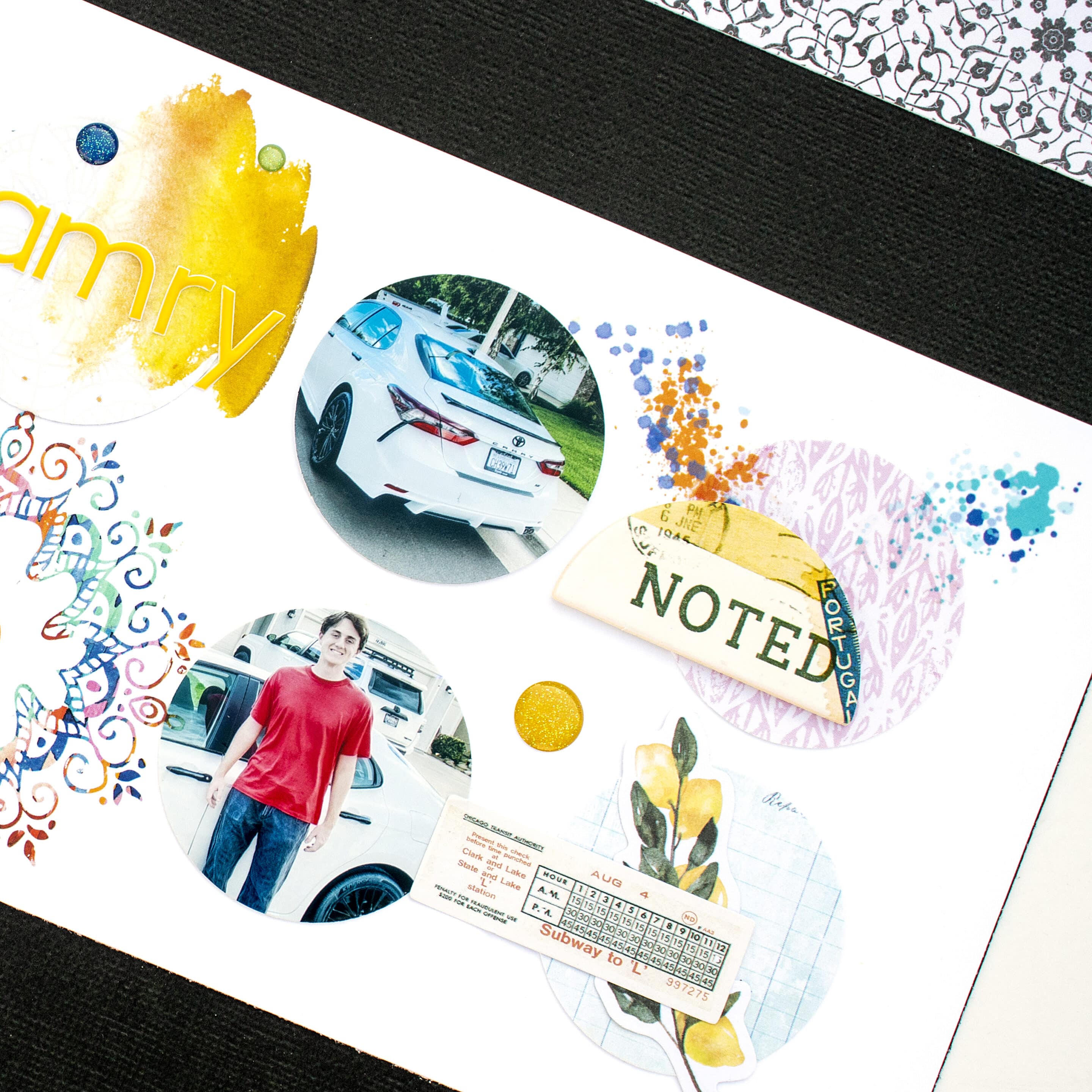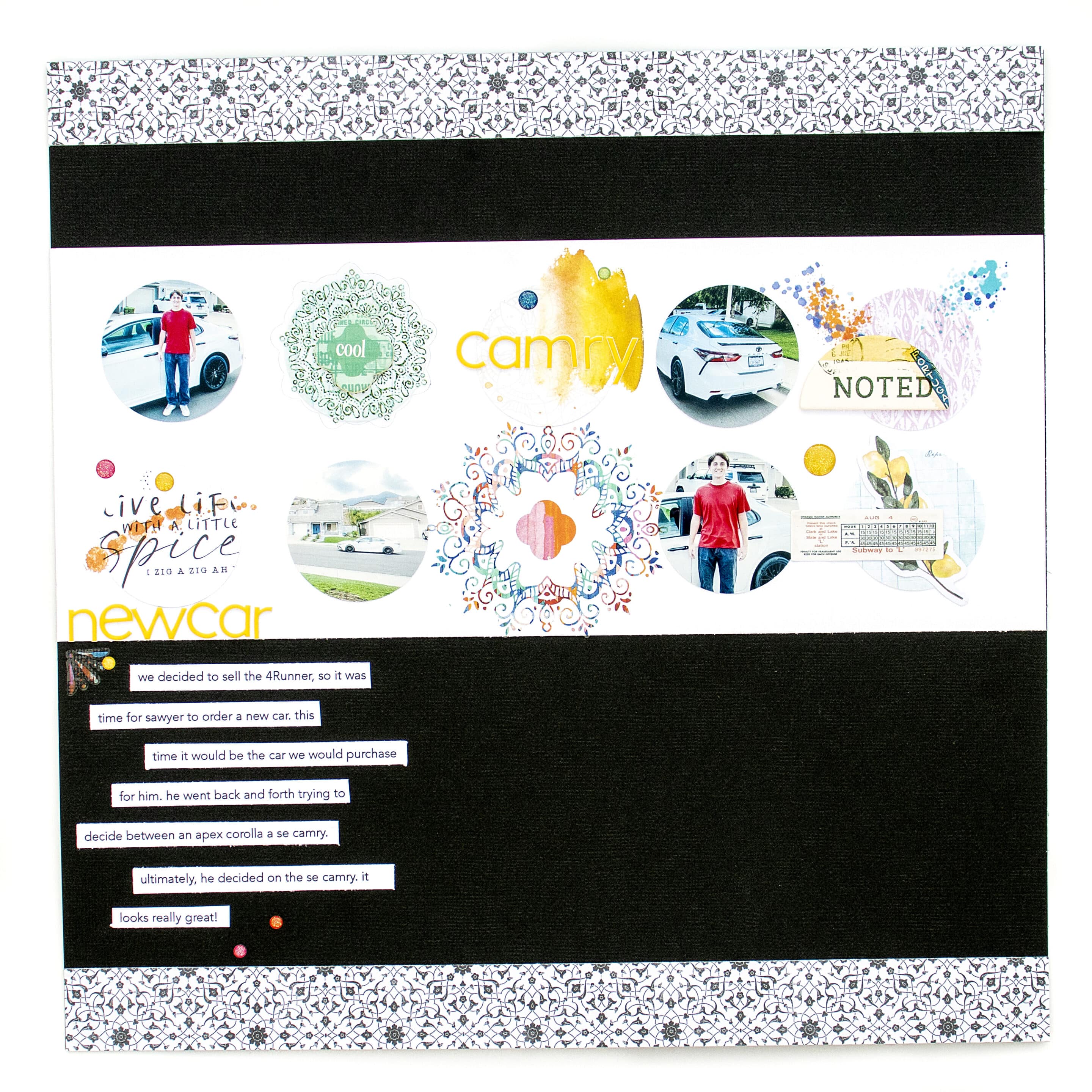 Here’s a look at my finished layout! I finished off the grid section with my title spelled out in the yellow puffy alphabet stickers that came in the kit; with the rest of the spread being relatively one-dimensional, I always like throwing in a different texture into my layouts, and puffy alphabet stickers are always great for adding a bit of extra texture and dimension! I hope you enjoyed seeing how I turned this sketch into a fun interactive layout, and I hope you try incorporating interactive elements into your memory-keeping spreads too! If you have any questions, don’t hesitate to contact me over on my YouTube channel or Instagram @ChouxPuffCreations! Thanks for stopping by!