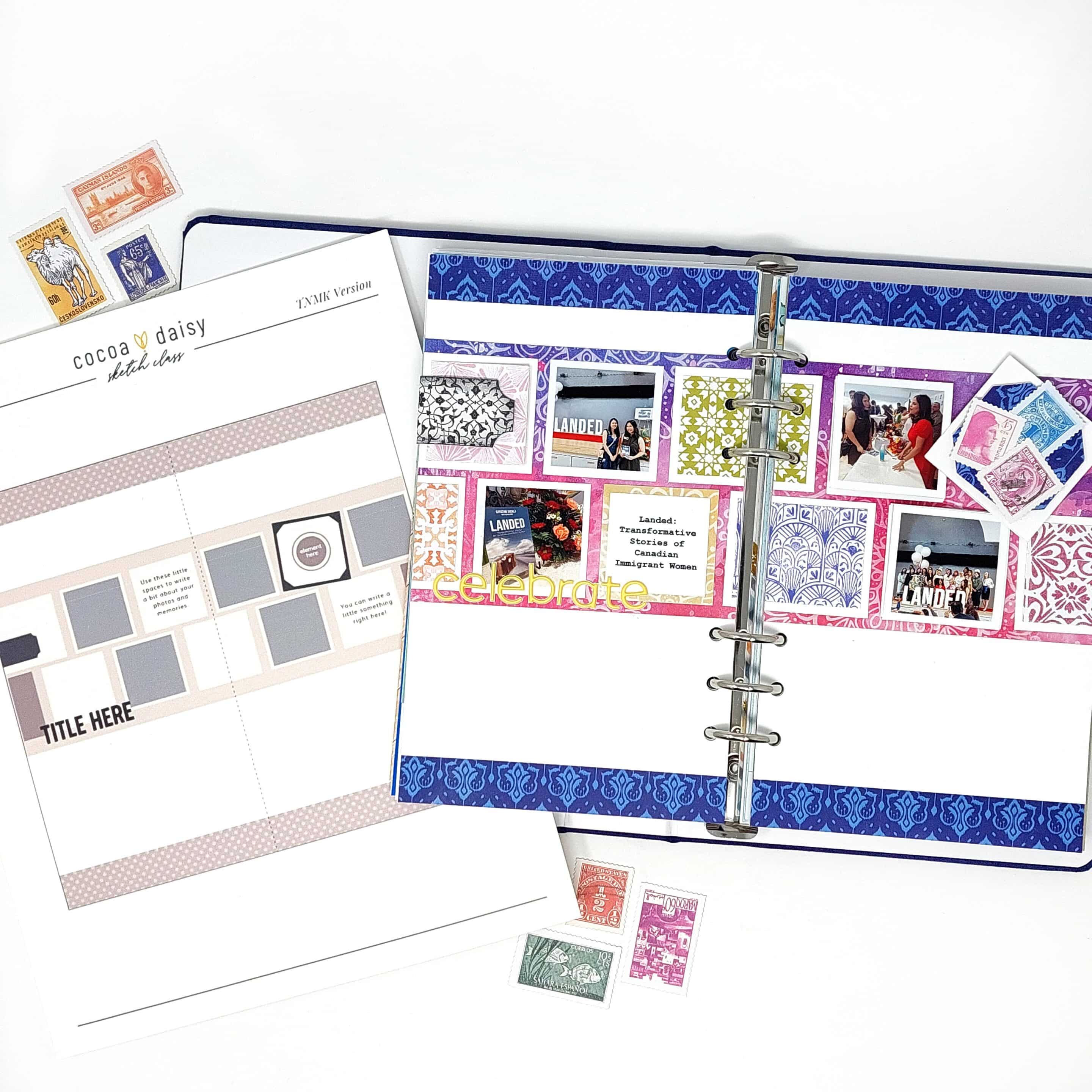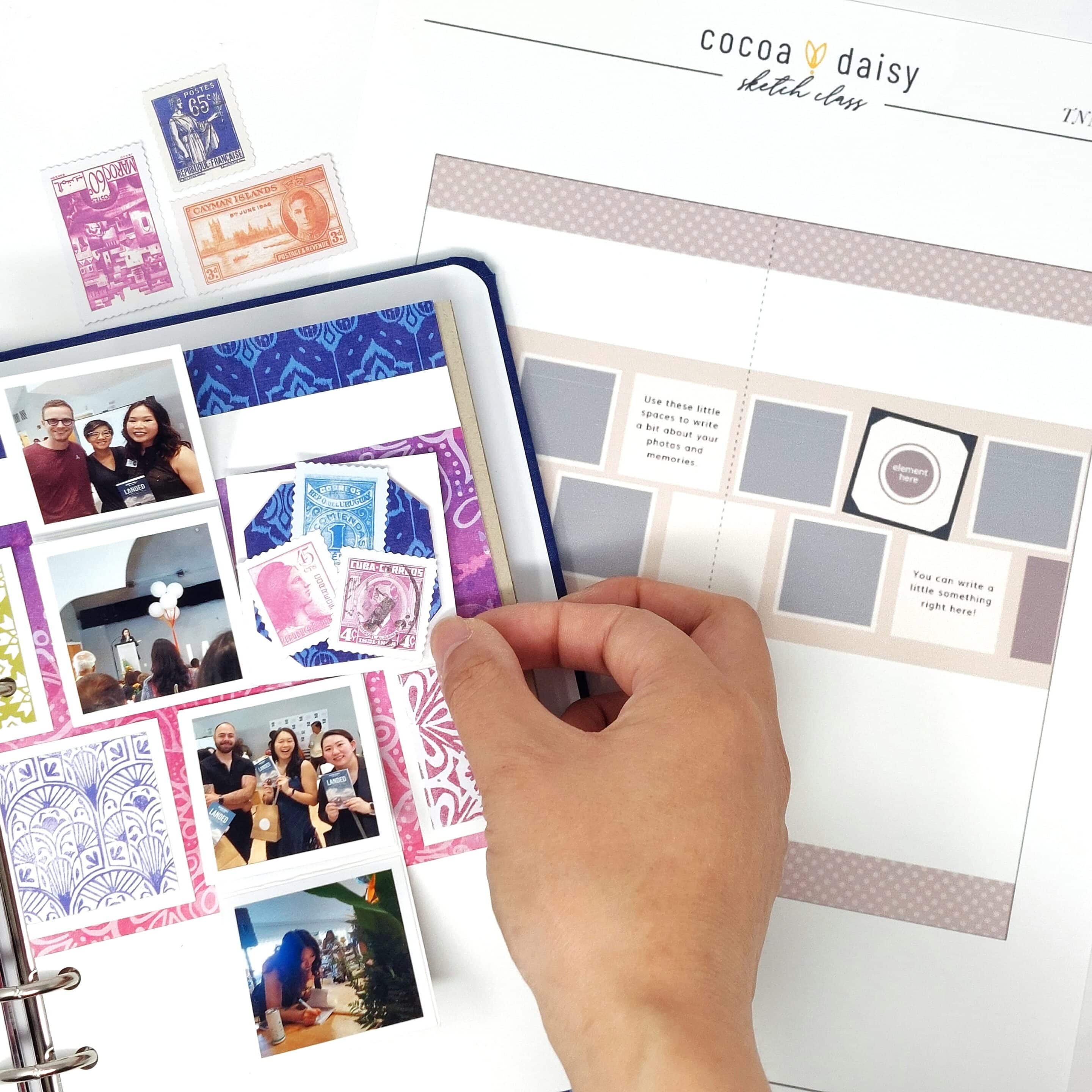 This is Shu-Wen here, @ChouxPuffCreations on Instagram and YouTube), and I am so excited to be contributing a lesson to this class! Interactive pages are a specialty of mine, and I thought it would be fun to share how I turned this sketch into an interactive layout in my TN-sized album with TWO different types of interactive elements! Let’s get started!