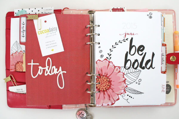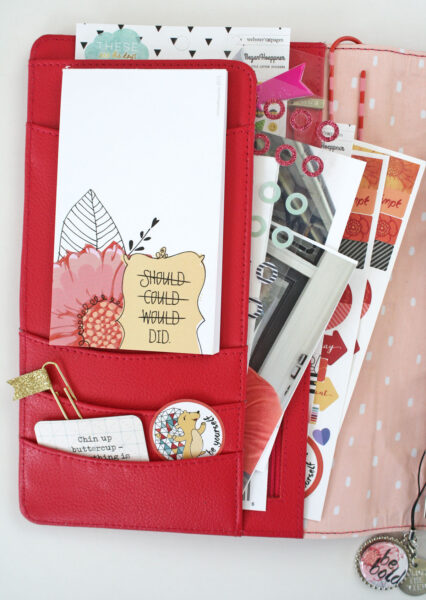 Most planners have a few pockets to hold stickers and notepads, and part of why I love my Kikki K. planners are the great pockets! I add the Day Planner notepad, stickers, a few clips, photos and pretty bits.
