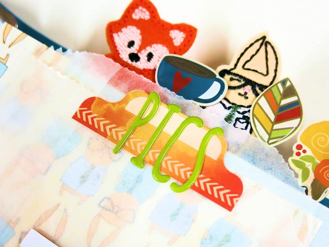 I added some of the puffy stickers to the scalloped edge for some added colour and decoration.