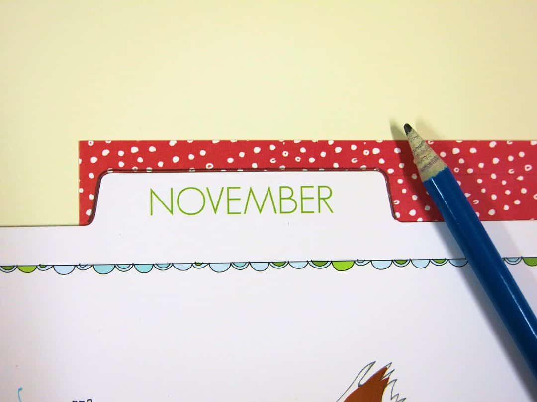 I used my November dashboard as my template. I needed some larger paper, so I took this sheet from my Cocoa Daisy November scrapbooking kit. This piece actually came from the paper addon here.I decided to use the red strip as my tab. I didn’t draw around the tab until right at the end though. I didn’t want my new dashboard’s tab to be in the same place as it wouldn’t be seen in my planner. So I drew around the outside and then moved the dashboard up and drew around the tab at the top.