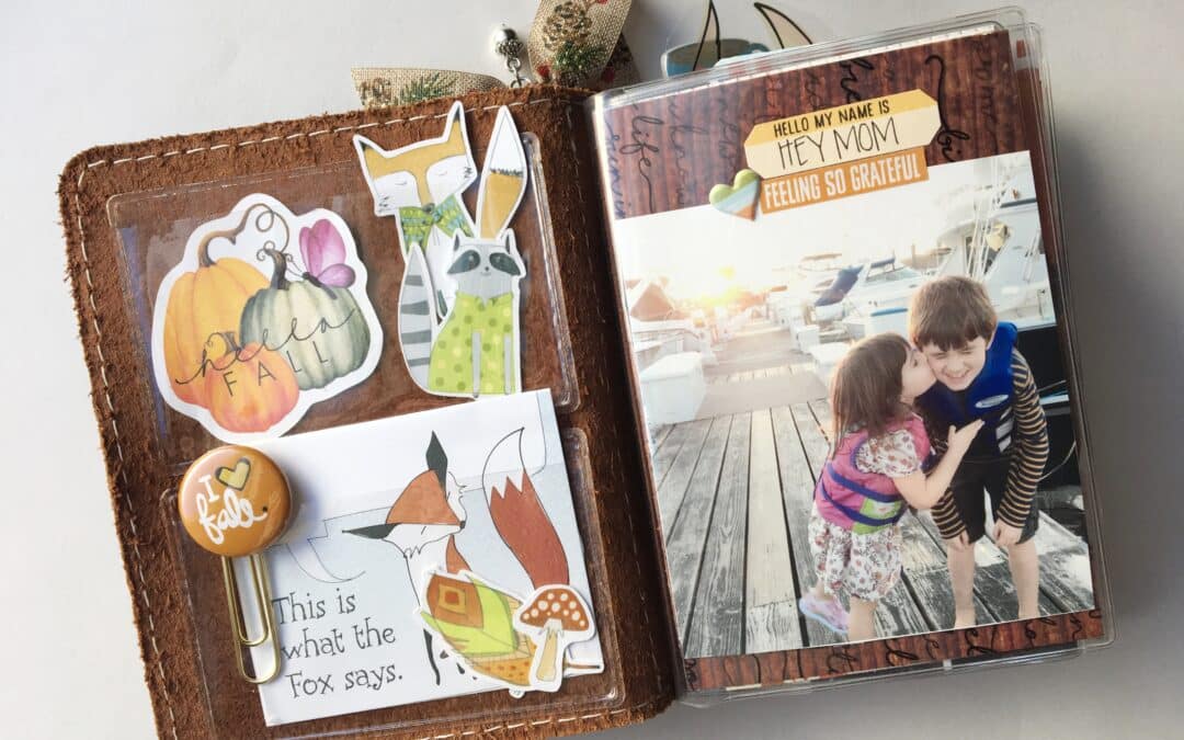 Next I always take the paper from the kit to make new dashboards. I use the vinyl dashboards from Foxy Fix because they act as little photo albums and I can change them out easily each month. In the picture above I put one of my favorite pictures from October and added a few stickers.