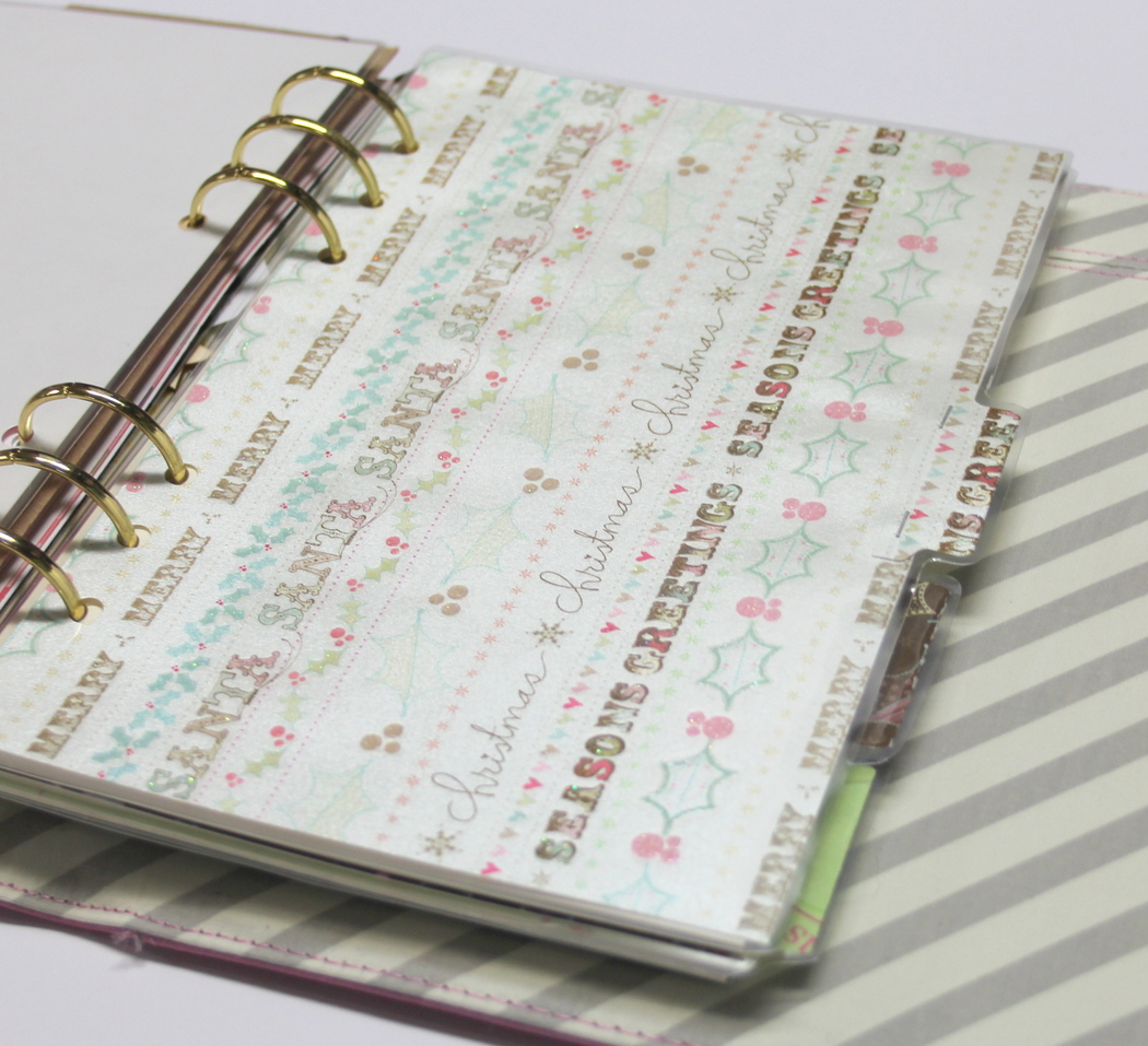 After you pick out your patterned papers, you will need to trim them down to size. To figure out the size, I just measure the inserts that came with my planner. At this point I don’t worry about the tab…all edges are cut straight…