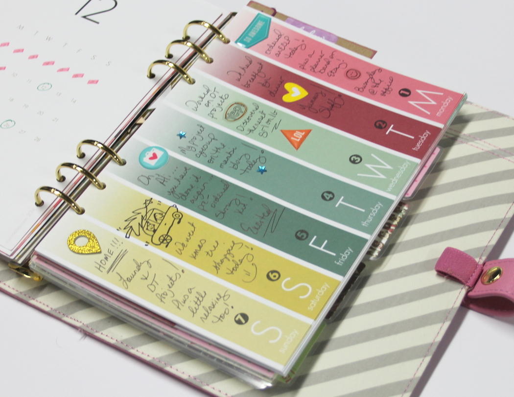 Once I got home, I took my scissors and trimmed off the excess laminate on each divider and punched holes with my template (one of the dividers that came with my planner).