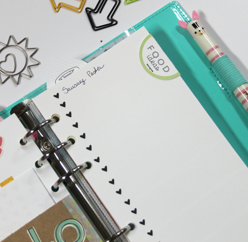 I love, love, love the Custom Die Cuts that were included in our kit from Evalicious!!! I added one to a trimmed down piece of cardstock to create a “Food Idea” list…I am always on the hunt for new recipes!!! That sweet little heart that I stamped out all along the left hand side of this sheet, is included in the Wood Calendar Number Stamp Set…