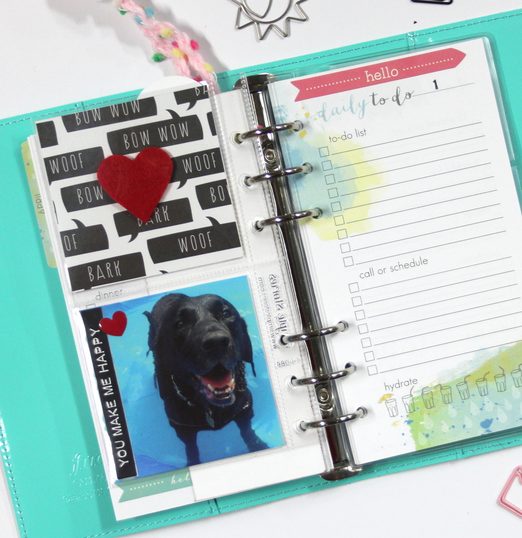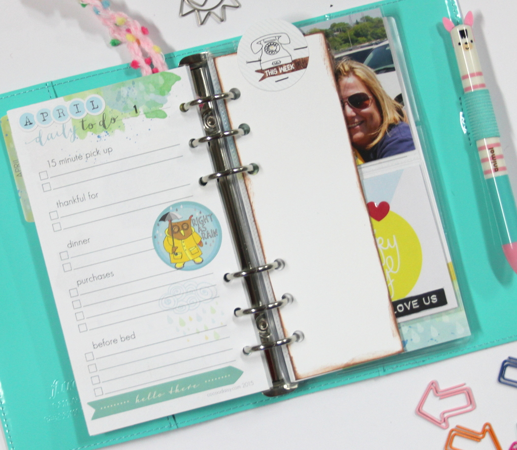 I wanted to add a few photos to my planner and I found this little pocket page insert that holds four 3×3 photos/cards…I can change out the photos from time to time…love it 🙂 This pocket page insert only had 2 holes so I used one of the planner insert pages as a template and punched out the holes needed! Having a single hole punch around is very handy when you have a ring binder planner 🙂