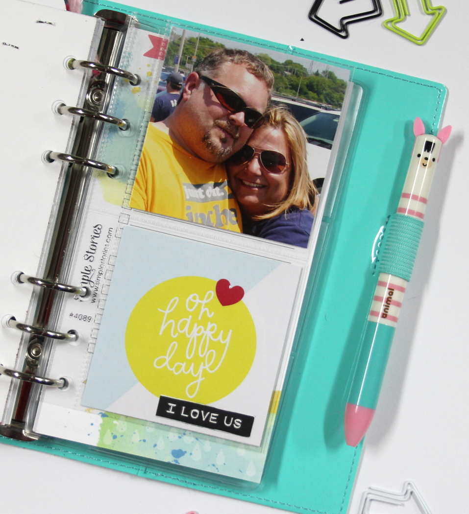 Created a simple page marker with a trimmed down piece of white cardstock and added “This Week” Custom Die Cut to the top…
