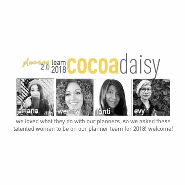 We are so happy to welcome these four talented women to our planner team! We are looking forward to all the inspiration they’ll be sharing in the next months. You will be amazed at how they are using their Cocoa Daisy Planners so make sure you follow them: