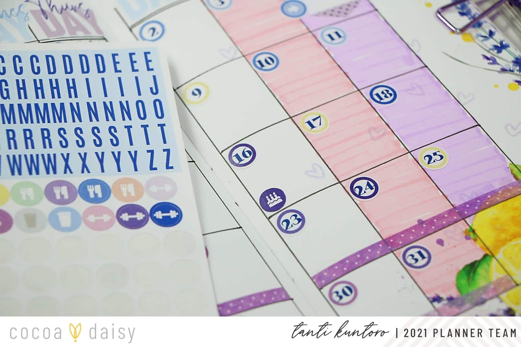 The size of each box is 2.5 cm x 3 cm and I love to mark the weekend section using highlighters. I love that Cocoa Daisy included the days of the week stickers in the