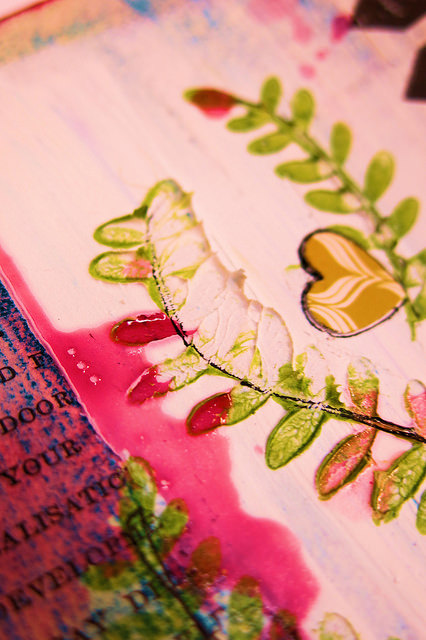 First up is Lisa who used the fern stamp in a mixed media fashion here in her art journal page: