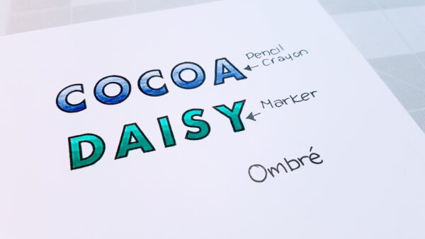 Seventh is Ombre, you can do it with pencil crayons, or markers, always starting with a full light layer, and then gradually get darker as you go down or up your letters, you could even to a sideways ombre, you could also use different colors to create a gradient ombre effect.