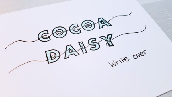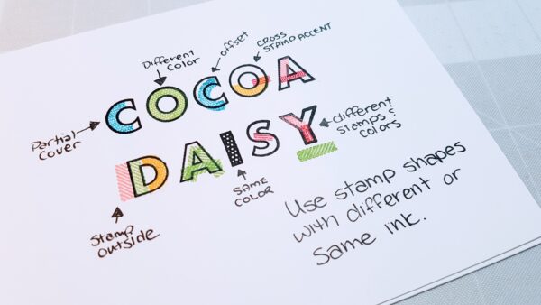 Fourth, we have the write over, so stamp in either black or another color, then fill in the stamps with a lighter color, then use drawn out cursive to write the same or even different words over top of the letters.  you can use a pencil first to do your cursive if you wish before you write over with marker.