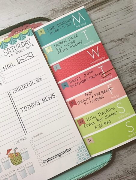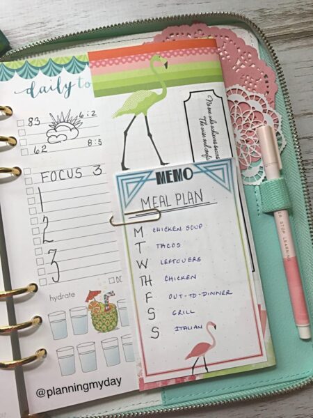 The inside of the flap is my Week-At-A-Glance. The front facing flap can be where-ever your creative imagination wants to take you. The possibilities are endless!  Meal plans, Quotes, Memories of the week, Daily Gratitude,Expenses, Orders, No spend, School activities, …..etc.