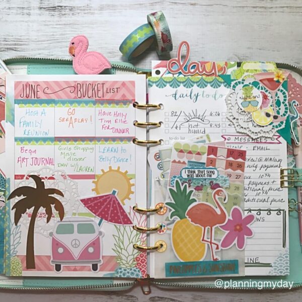 Right after the Monthly view, and before the start of my Daily pages is the Year-At-A-Glance! I chose to use this as my Bucket list for the month of June!  This is a fabulous idea from my sweet friend Kami.  You can go say hello on her instagram page here…. Chipped_in_time   …..As well as read her latest fun blog post here! Kami’s Blog Post
