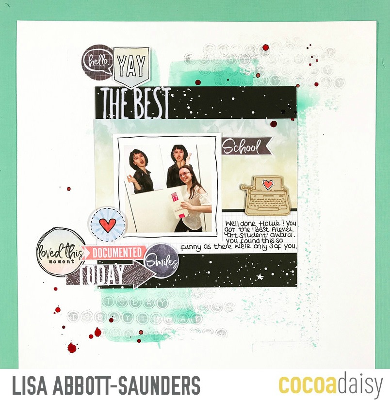 Don’t be put off if something isn’t quite right. There are often ways around to adapt a piece to make it fit. Here for example, Hollie was leaving school, but I have still managed to use this flag on this layout that I’ve created for her end of school award night.