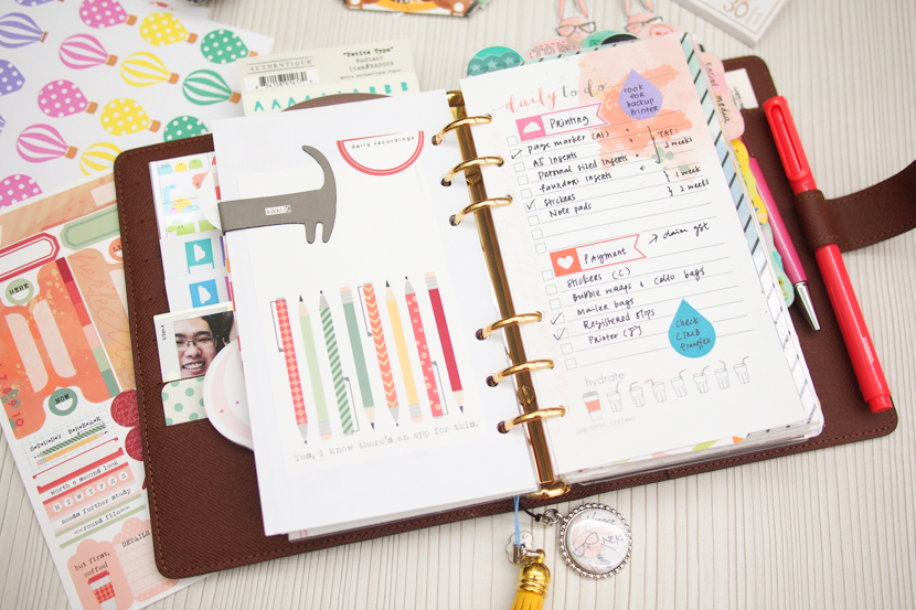 And here comes the Daily pages – I don’t use the Daily to do for my daily planning. Instead, I cover up the title of each section with some banner / flag planner stickers. I use this to make a checklist for my task. I also use the dew drop stickers to highlight the important tasks / reminders.