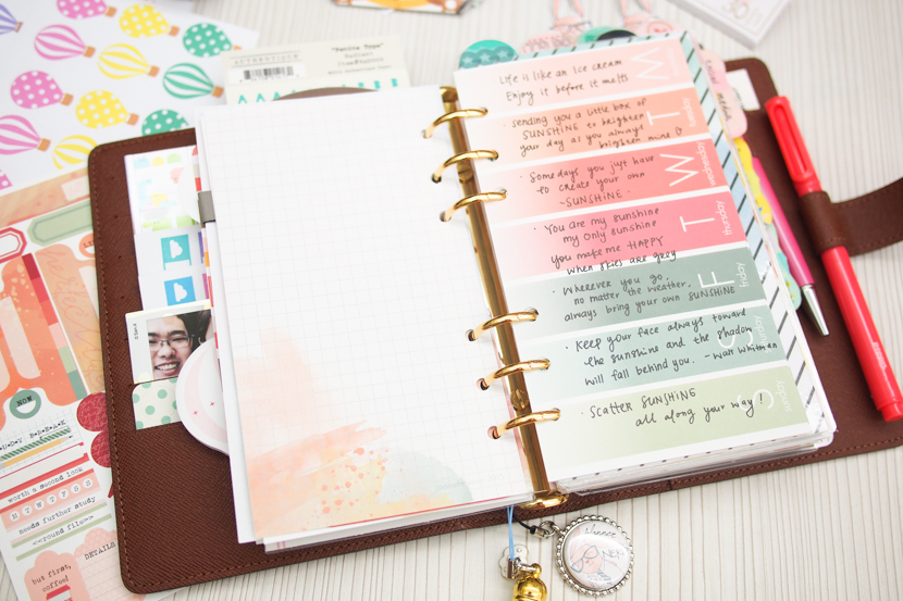 I used to used these cute week-on-one-page inserts either for my baby journal or #listersgottalist challenge. But this month since I am using it for planning my future kits, I use it to write down quotes / saying that I found related to a particular theme (in this case, which is summer and sunshine theme).