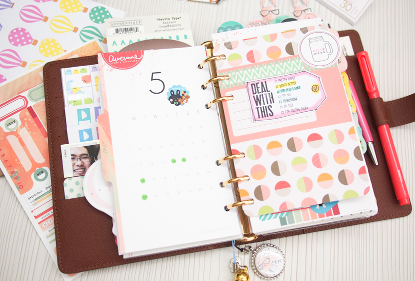 Hello everyone! I received my May kit around first week of May so I didn’t use it for any daily / weekly planning for May. Instead, I want to show you how I stretch the Daisy Day Planner pages to use them for planning for work. I normally use A5 sized planner for my work but I have recent gotten this LV agenda MM sized (equivalent to Filofax personal sized) as Mother’s Day present. So I want to use this to plan my work and jot down ideas for my monthly kit club.