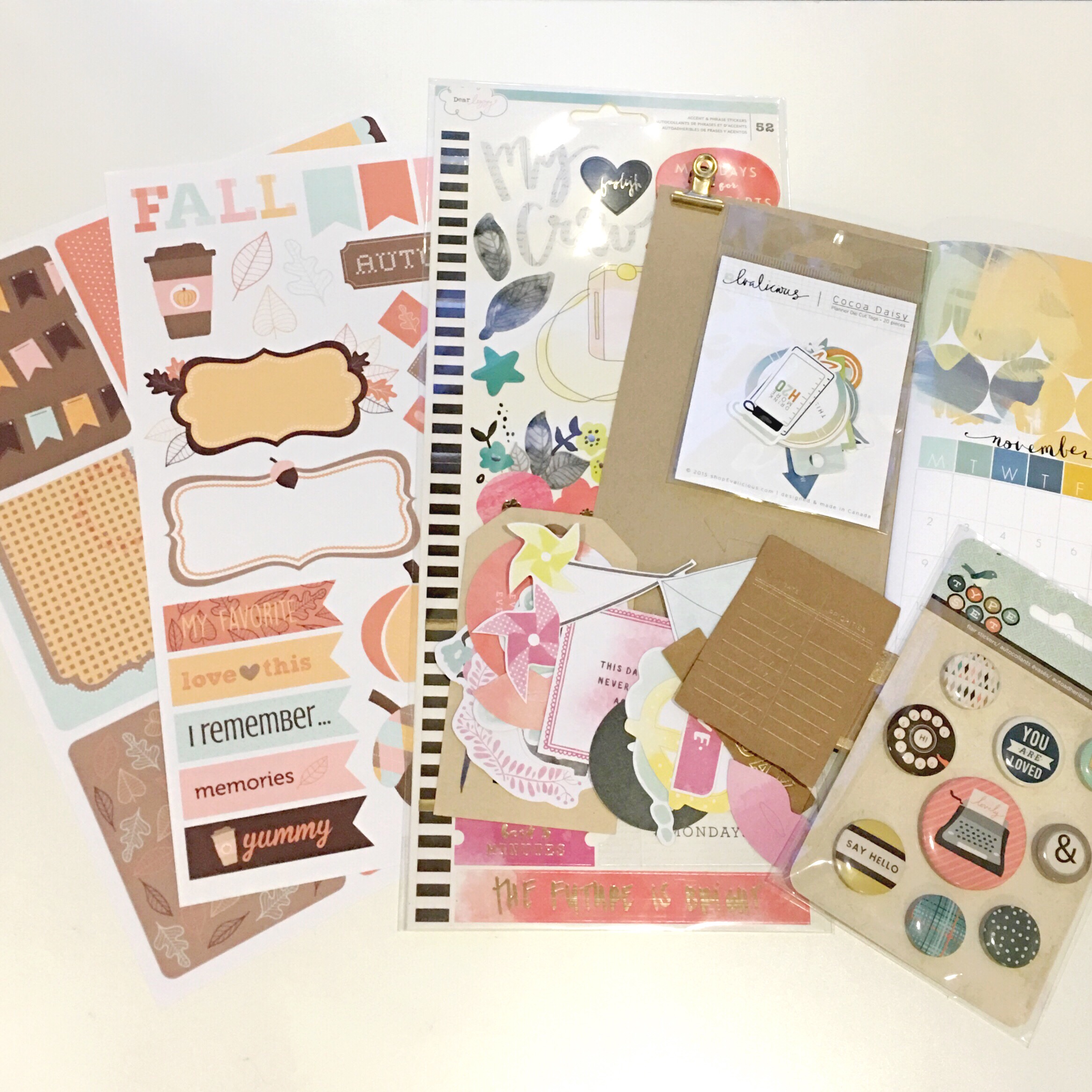 So my supplies were the November Daisy Dori, parts of November’s Main Kit, Fall printables for KellyBangsCreative, washi tapes from Michael’s Recollections, and pieces of past kits: