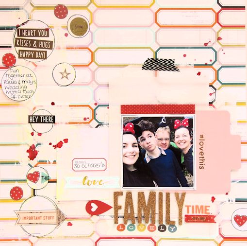 And Lisa shows how versatile and different this sketch challenge can be by contrasting her first layout above with this fabulous one below. She once again utilized the circle design but the end result was a totally different layout! Love the drawn circles and how she added the sentiments and journaling within them! Family Time - 18