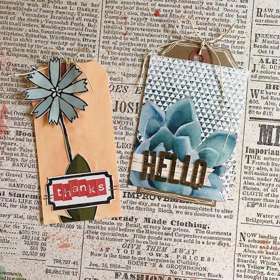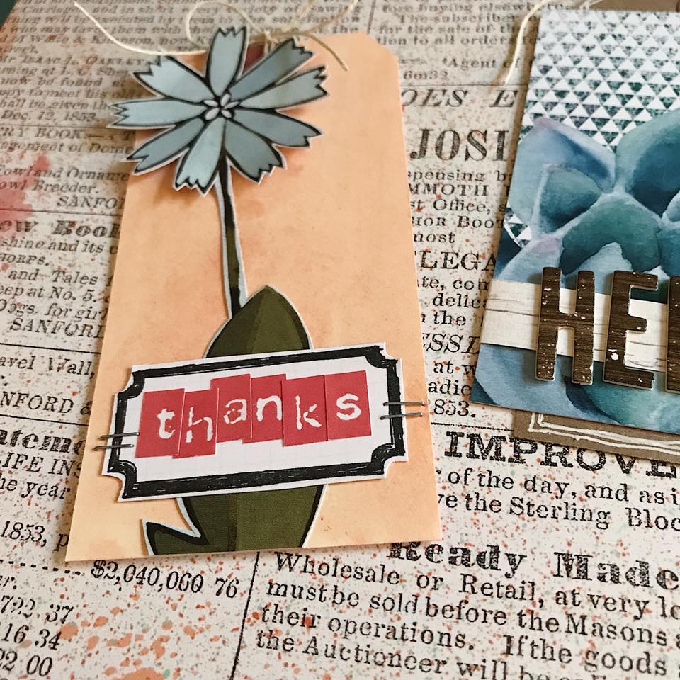 Here’s Alissa with a set of tags she created and a close up, don’t you love those staples on the thanks card and the dimension on the Hello?!