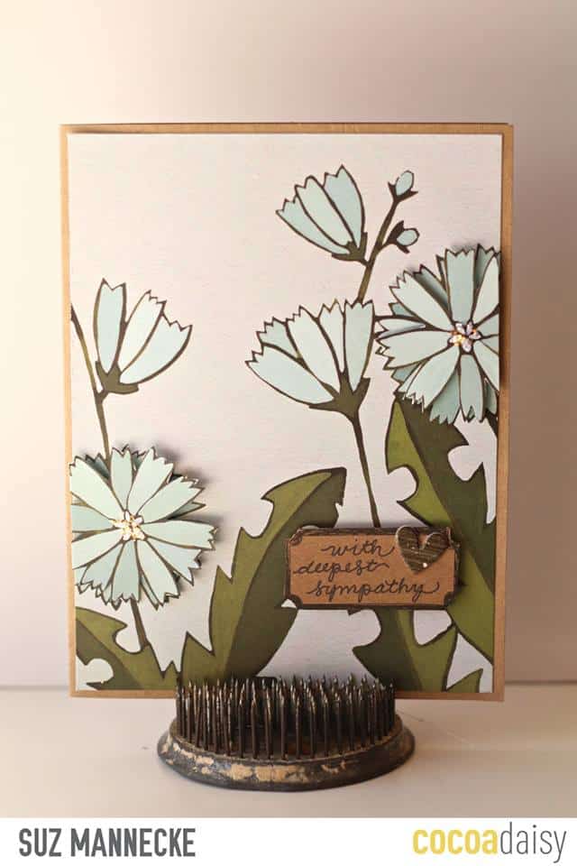 Her next card is a fussy cutting genius, and I love that she popped some of the flowers up and gave them centers!