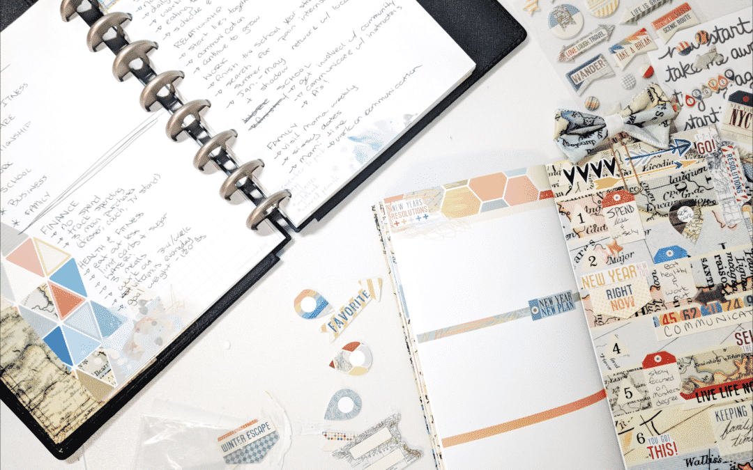 I started off by jotting down general topics of my life that are important to me. Mine may differ from yours; you may have more or less. That is all up to you! There is definitely no right or wrong way when it comes to figuring out your personal goals. I used the January A5 Unpunched pages for this part along with beautiful surprise PenGem in the planner add-on kit!