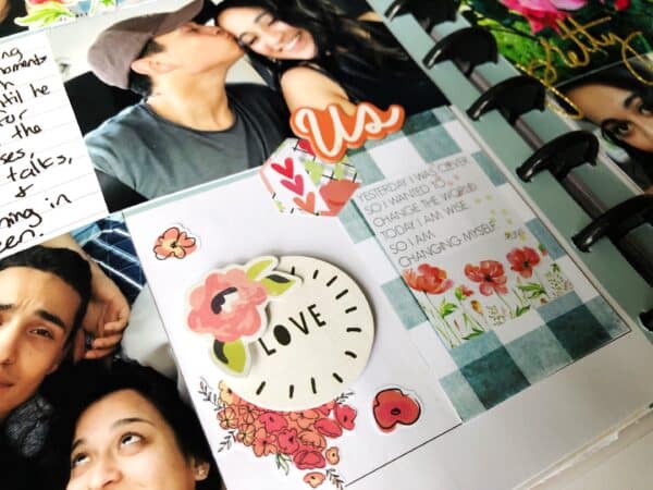 I spy another sticker from the sticker kit! I absolutely love this quote and knew I had to include it in this layout, especially with the cute poppy flowers.