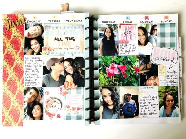 Here you can see that I used another card from June’s pocket memory keeping kit to fill up two of the rectangles in my planner. Sometimes I ignore the days in my Happy Planner and kind of just scatter the pictures how I please. I’m happy as long as it’s documented within that week, the exact dates aren’t that important to me unless it’s a special occasion.