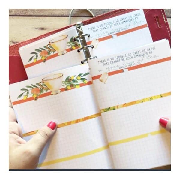 It’s funny how our planning styles change, isn’t it? I’ve been a personal size planner for years, and then fell in love with the personal wide size. So when Cocoa Daisy released their b6 dori kits, I was sooo excited. That was the perfect size to cut into a personal wide insert! So I used that for a few months and absolutely loved it….and then I discovered a6 size. And it is the best size for having space to write, while still being able to carry around easily. And for all it’s being so easy and small to carry around, the inserts themselves aren’t that much smaller than personal wide!