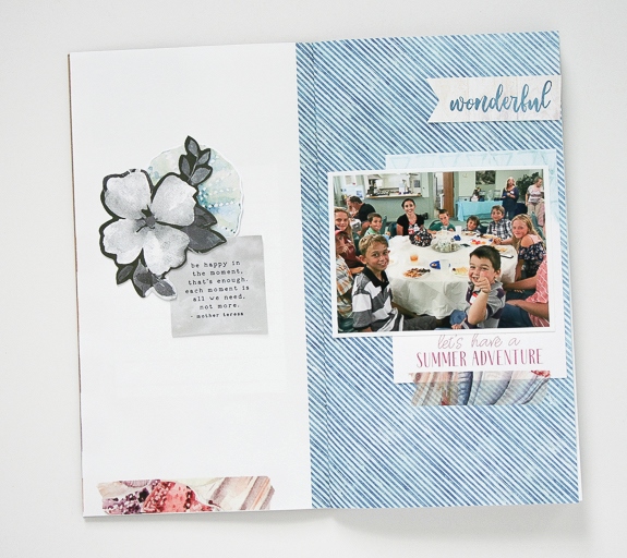 I chose to design my mini album in the July Simple Dori that corresponded to the June Memory Keeping kits.  I removed the staples and took a few pages out as I didn’t have enough pictures to fill the whole book.