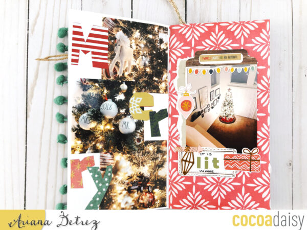 “It is LIT in here”: To document our very first Christmas tree I took a photo from the stairs to get this beautiful shot. I really wanted to capture the ambiance since this will probably be our only Christmas in this house (my husband is in the Air Force). I cut out the “MERRY” from the 12×12 paper. Then used bits and pieces from the main memory keeping kits and the Christmas bonus kit.