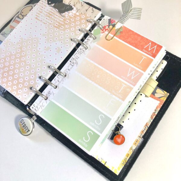 One of my must-have items in my planner is a place to list a daily gratitude. I’ve found that if I take the time to do that first each day, and then work on planning out the details of my day, I have a better focus and frame of mind. I’ll be using the weekly stripe pages for that again this month. On the back, I like to add a reflection, quote or inspiring scripture.