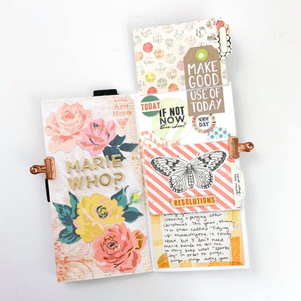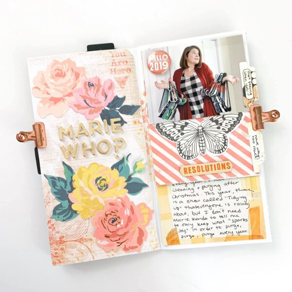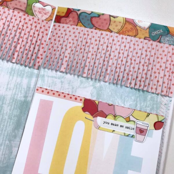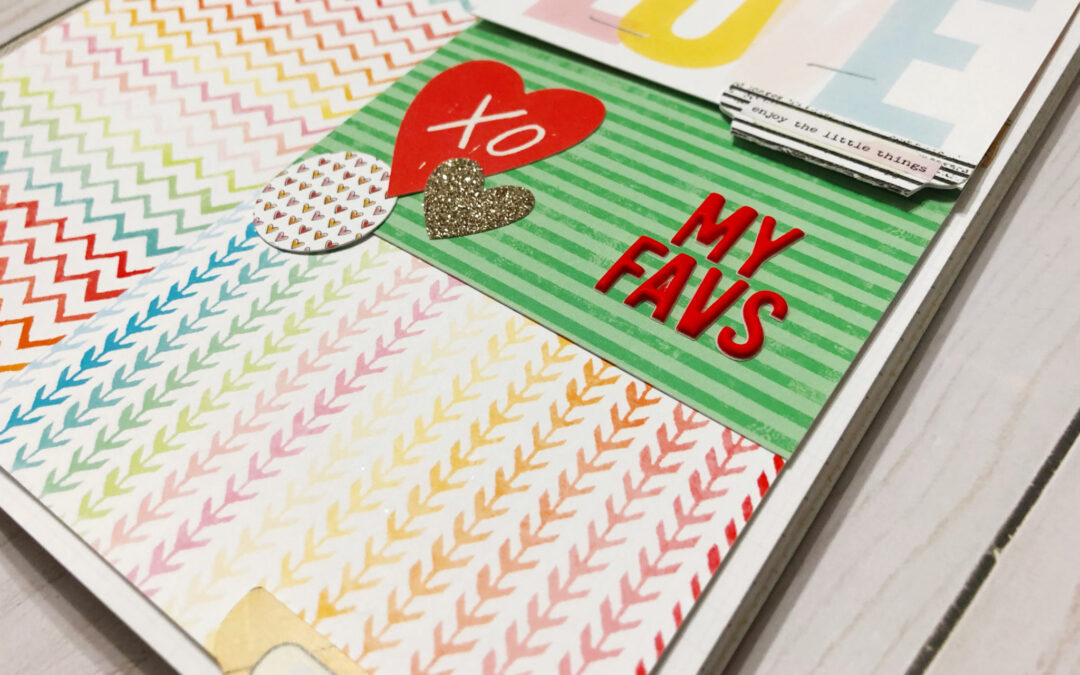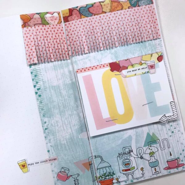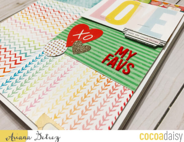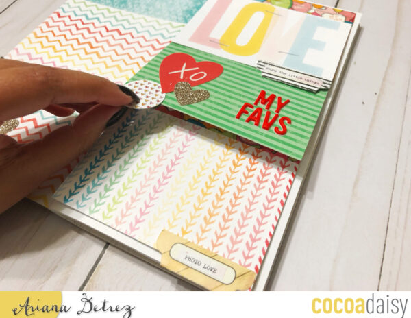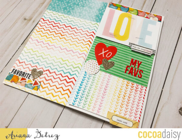I created a layout focused on things I love. For this simple dori I am putting together a mini album of all the things, people, and ideas I currently love. Underneath the pocket cards are photos of things I am currently loving and journaling to go along with it.