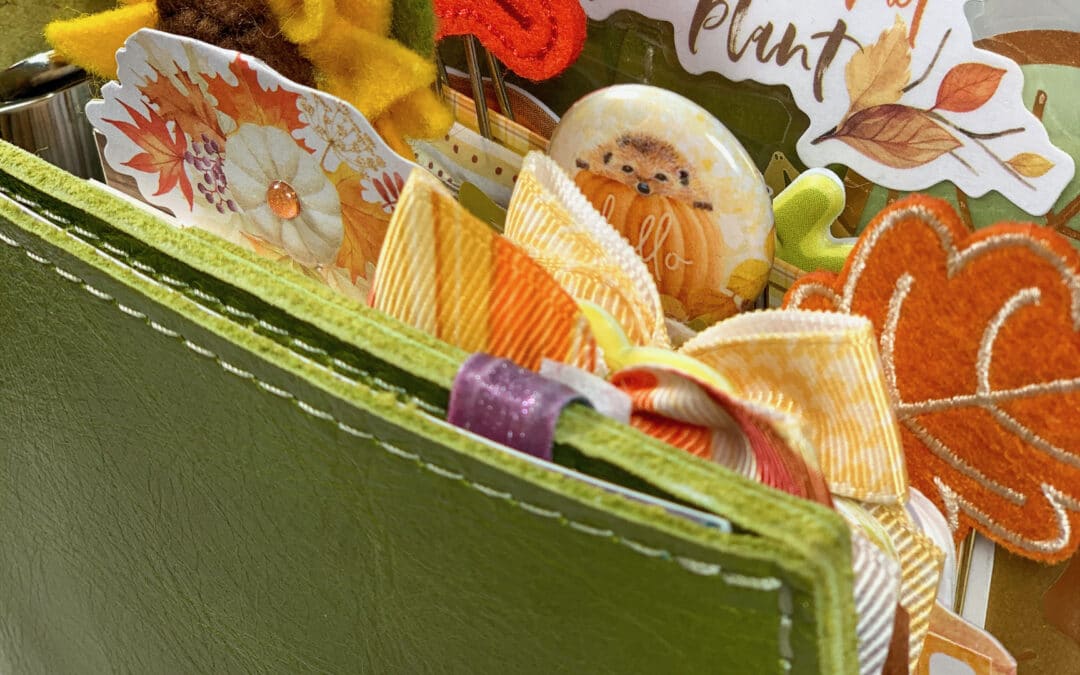 Finally, my sticker folder for this month was also not immune from the glitter dots! I enjoyed experimenting with layering and using some offcuts of paper from the folder inside on the front of it – I think it’s come together really well, and it just feels so autumnal.
