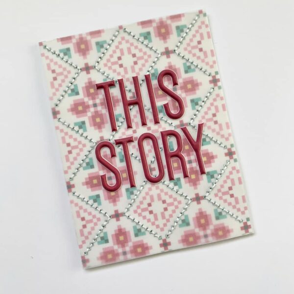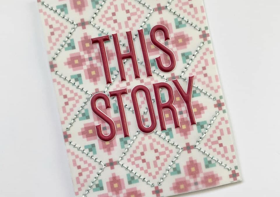 My favorite pocket card title is the ‘This Story’ card. I had a lot of fun stitching the vellum onto the card and those puffy alpha stickers from the Travelers Notebook Memory Keeping Kit are my favorite! The alphas are the perfect size for creating title for pocket cards and traveler’s notebook pages!”
