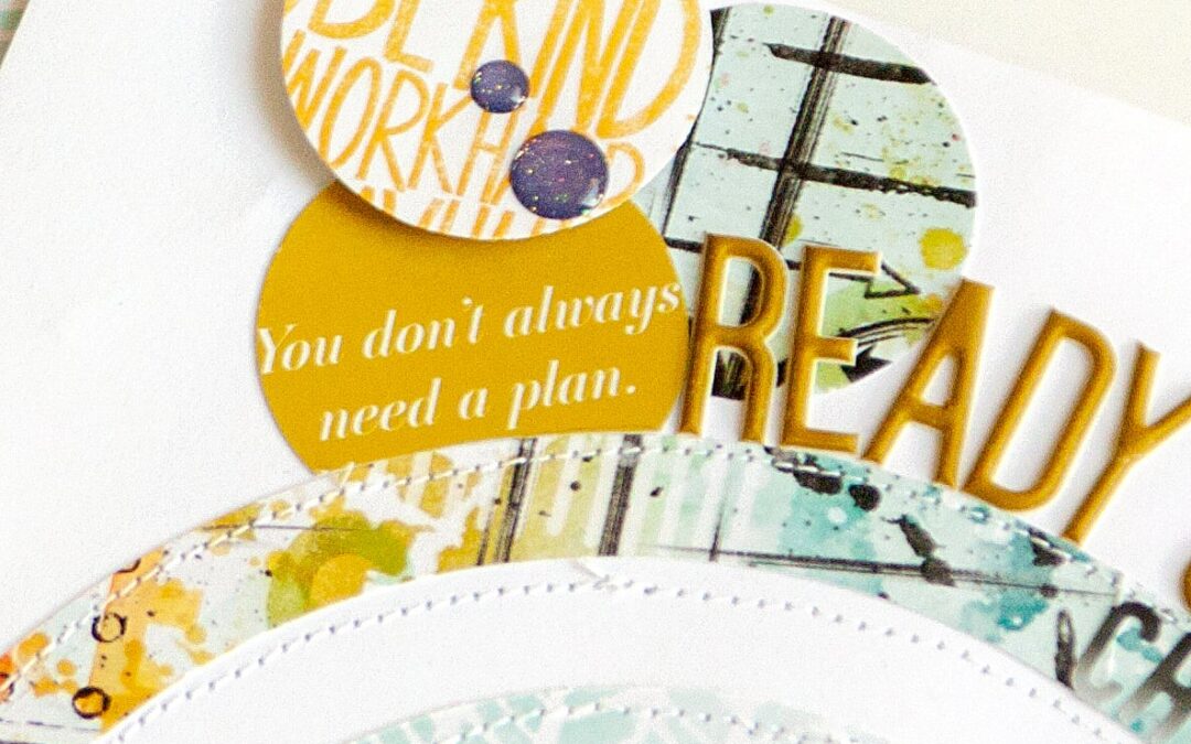 I continued with punched circles from the colorful patterned papers to accent the bullseye!” Jennie’s design is a wonderful way to incorporate the bold patterns and colors from the papers without dominating the page. Adding the punch paper elements provides the perfect amount of embellishment for this minimalist layout.