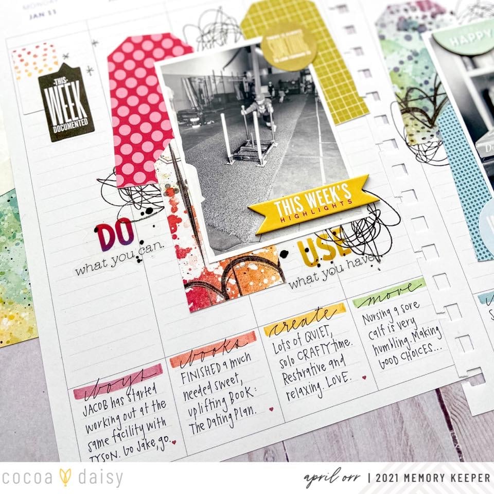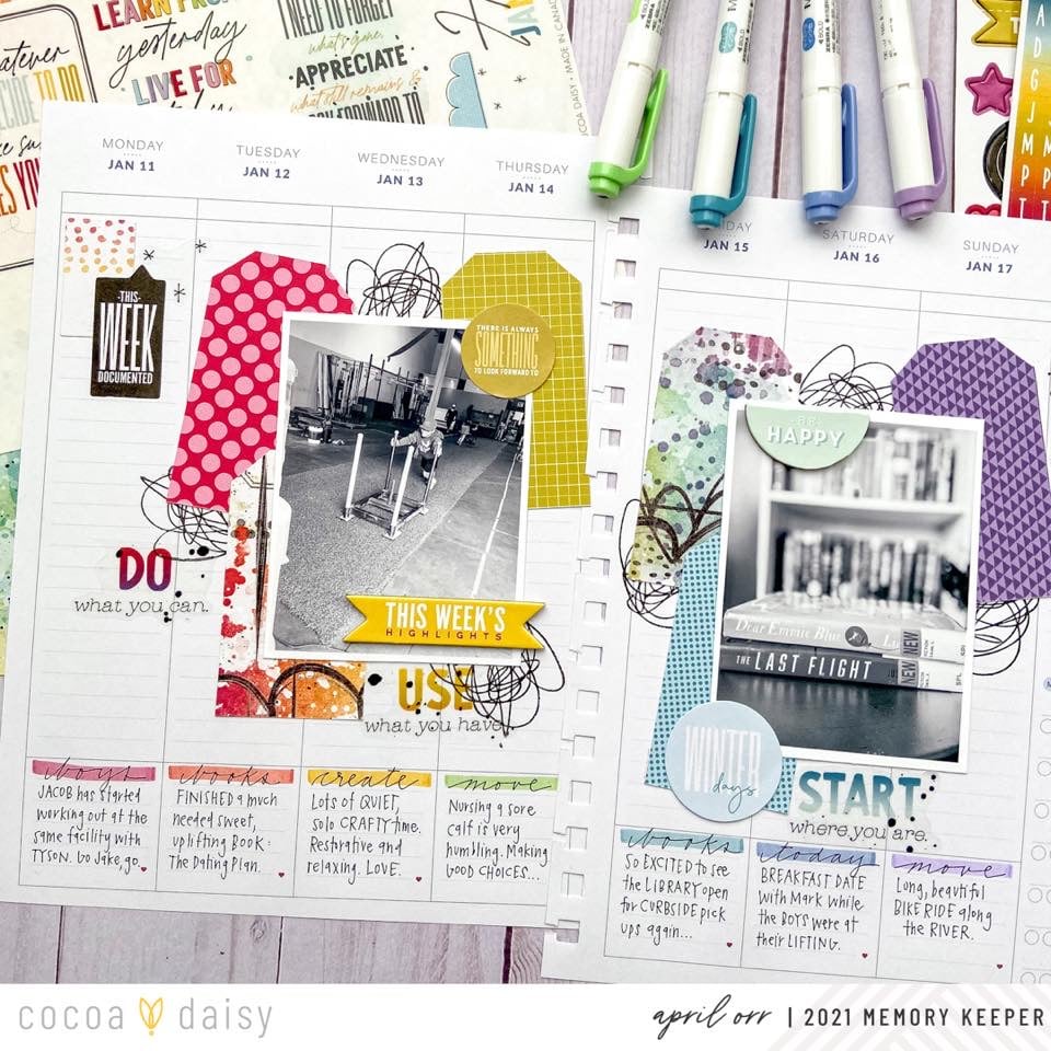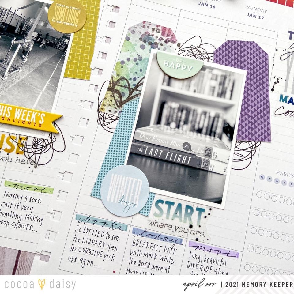 Just as April said, memory planning is entirely up to you! We love how April’s weekly spreads have a mini layout feel, with the bonus of weekly documenting. If you are new to memory planning, consider starting a weekly spread with one or two photos, rather than feeling the pressure to “fill the page”.