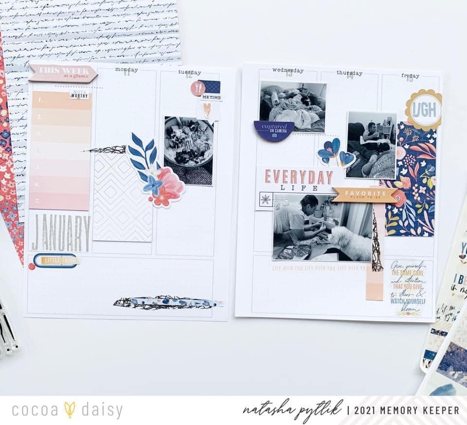 We love how Natasha is utilizing this planning for memory keeping! We encourage you to customize your memory planner layouts to work for you, as Natasha demonstrates here. Not many photos? No problem! Have a lot to say? Journal away. Memory planning should be fun, with a “You do you” attitude.