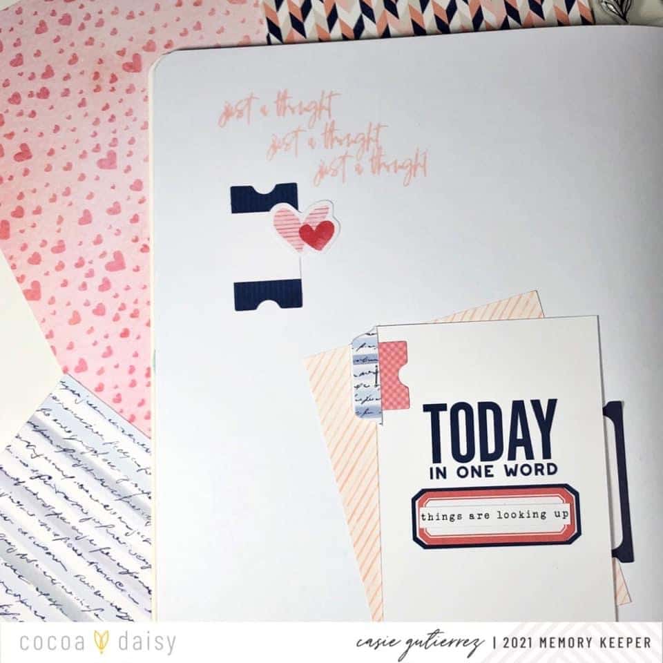Hi Daisy Fans! I love the variety of new items that come in the new modern memory keeping kit. In the Denim & Blush kit, the blush ink pad and word strip stickers were stand out items.