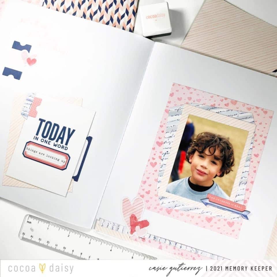 The updated Modern Memory Keeping Kit inspires our Memory Keeping Team to jump into all kinds of paper crafting endeavors. Today, we’ll share a few of these projects featuring the Denim and Blush Modern Memory Keeping Kit. Let’s see what they created!
