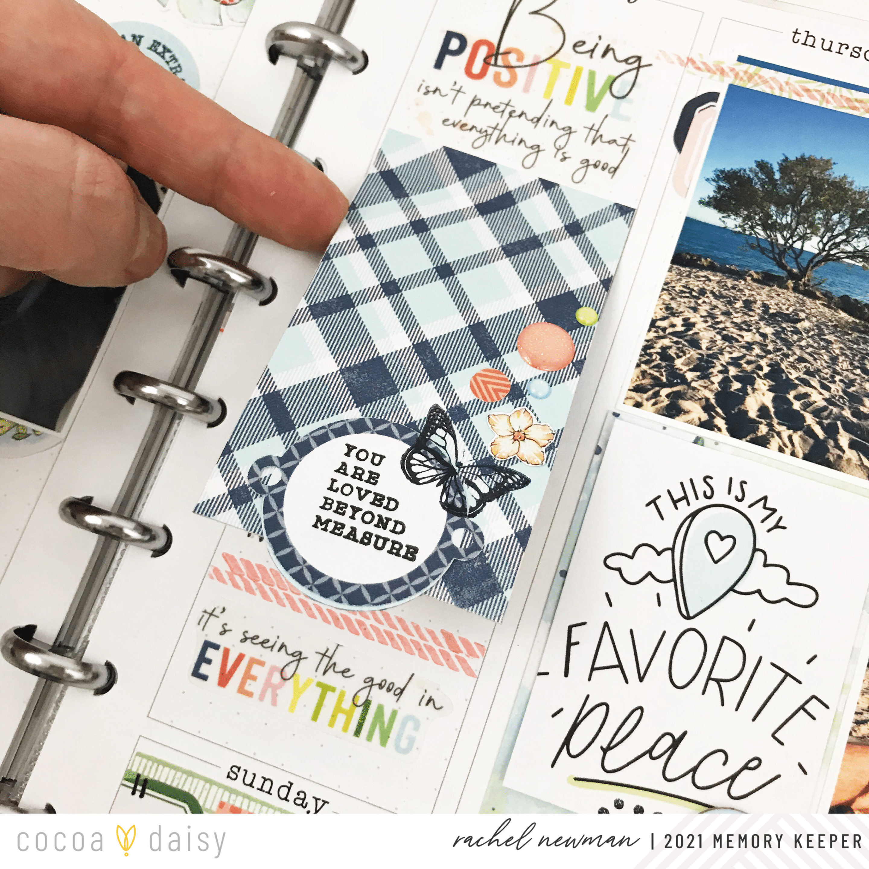 My family experienced the loss of a loved one this week and I wanted to document this moment, too. But I also wanted to keep my thoughts a little more private. To do this, I made a flip using paper from the Treetop Canopy Traveler’s Notebook Memory Keeping Kit and adhere the top .25 inch to the page. The quote from the Treetop Canopy Memory Keeping Sticker Kit was a perfect way to frame this flip and complete the page. If you are looking for more inspiration, I have a Memory Planning playlist of my YouTube channel featuring many of the Cocoa Daisy Kits in my memory planner.