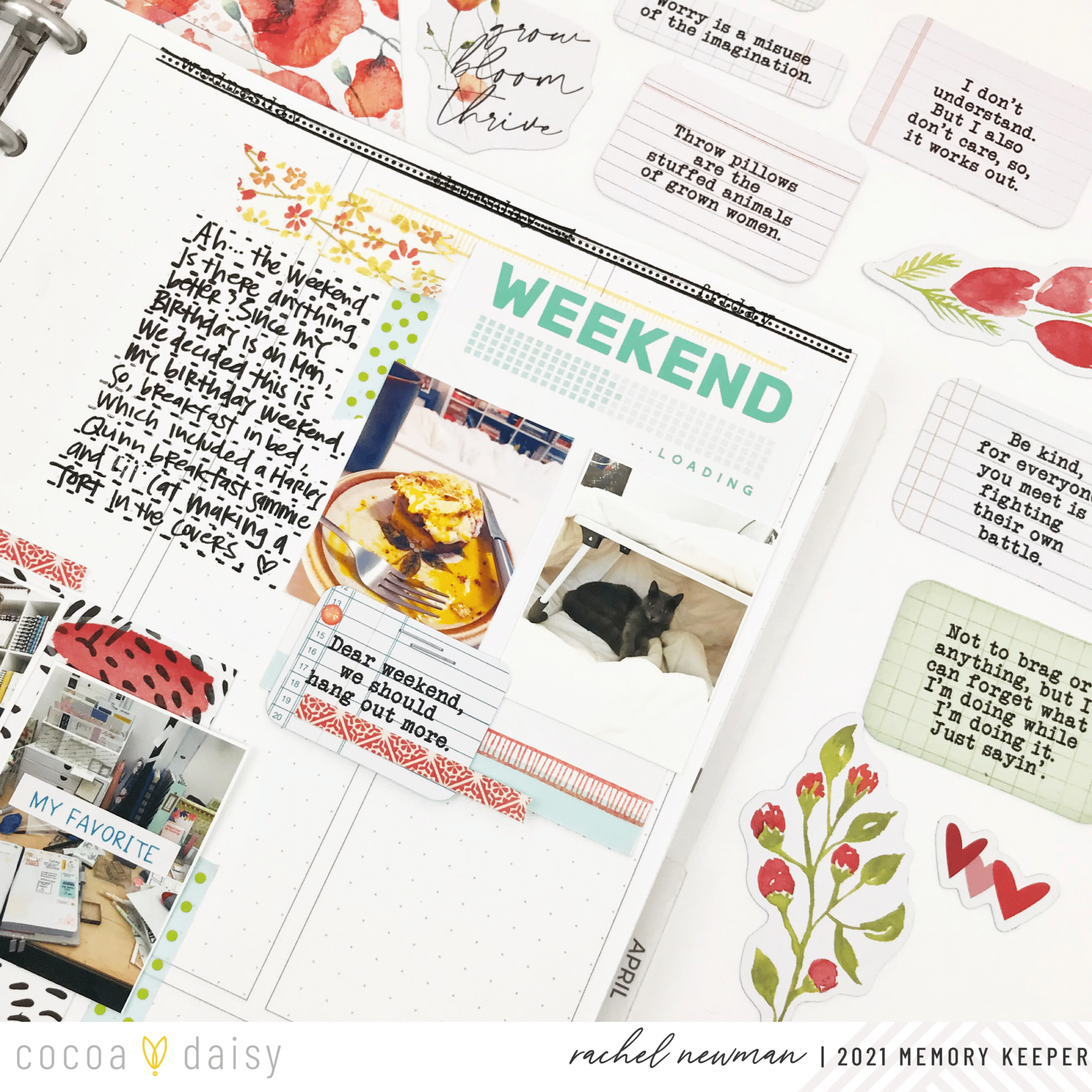 In the last few years, memory planning has become a fun and easy way to document your weeks. Thanks to its popularity, there are now several types of memory planner styles out there (including the Cocoa Daisy Planner!) Like most planners, memory planners typically come with a weekly layout that can act as the template for building your memory planning spread. But sometimes, as memory planners, we want to mix it up go “off-grid” to create a layout that simply ignores the planner page provided. This can help keep the memory planning process fresh and give you the opportunity to use different supplies like pocket cards. In today’s post, we’ve asked the Memory Keeping Team to think outside the memory planner box and I think you are going to love what they came up with.