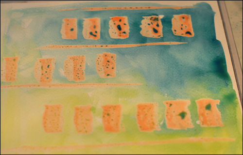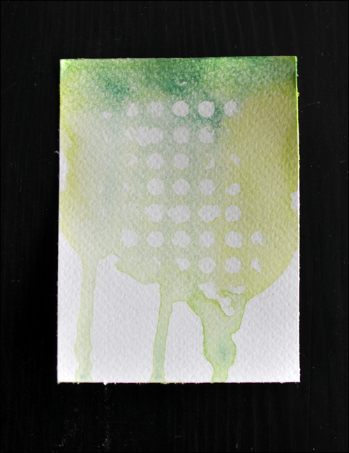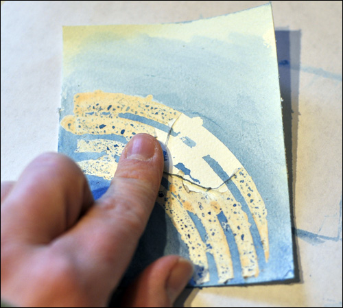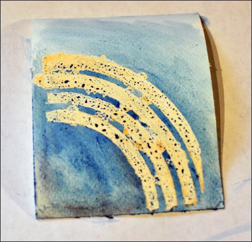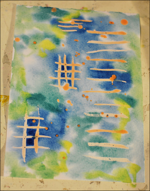 After rubbing the masking fluid away, I especially loved the tiny patterns made by the bamboo skewers!