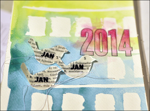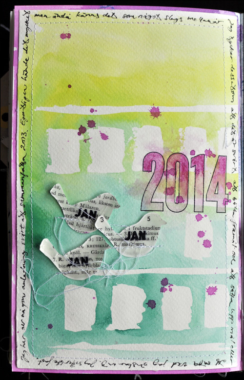 …and stitched them onto my page (after rubbing the masking medium away). I also used the Day in the Life 2014 stamp set on my page, and coloured the numbers very loosely.